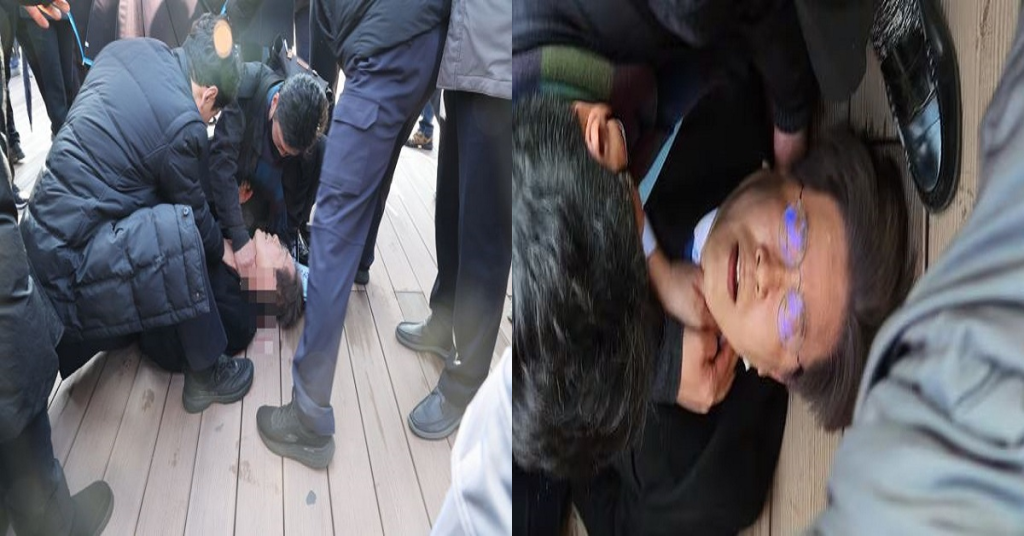 더불어민주당 이재명 대표가 2일 부산 가덕도 신공항 부지 현장 방문에 나섰다가 신원 불상의 인물에게 피습당했다.